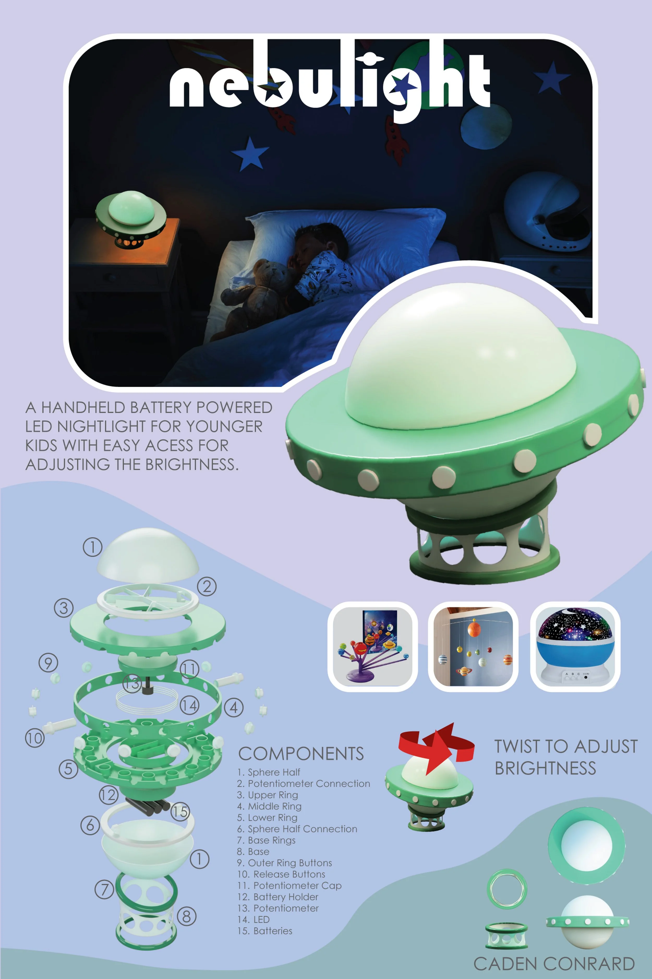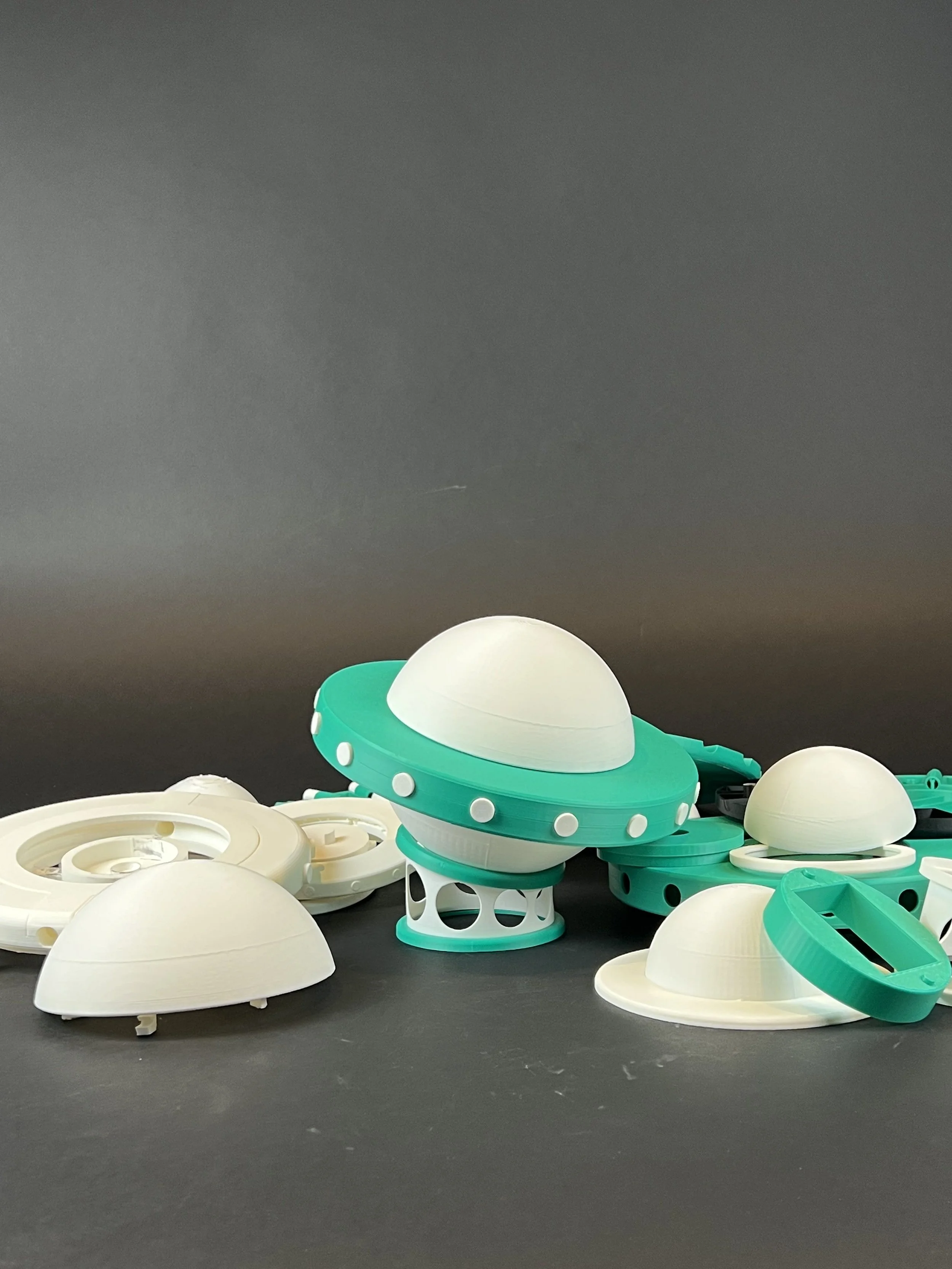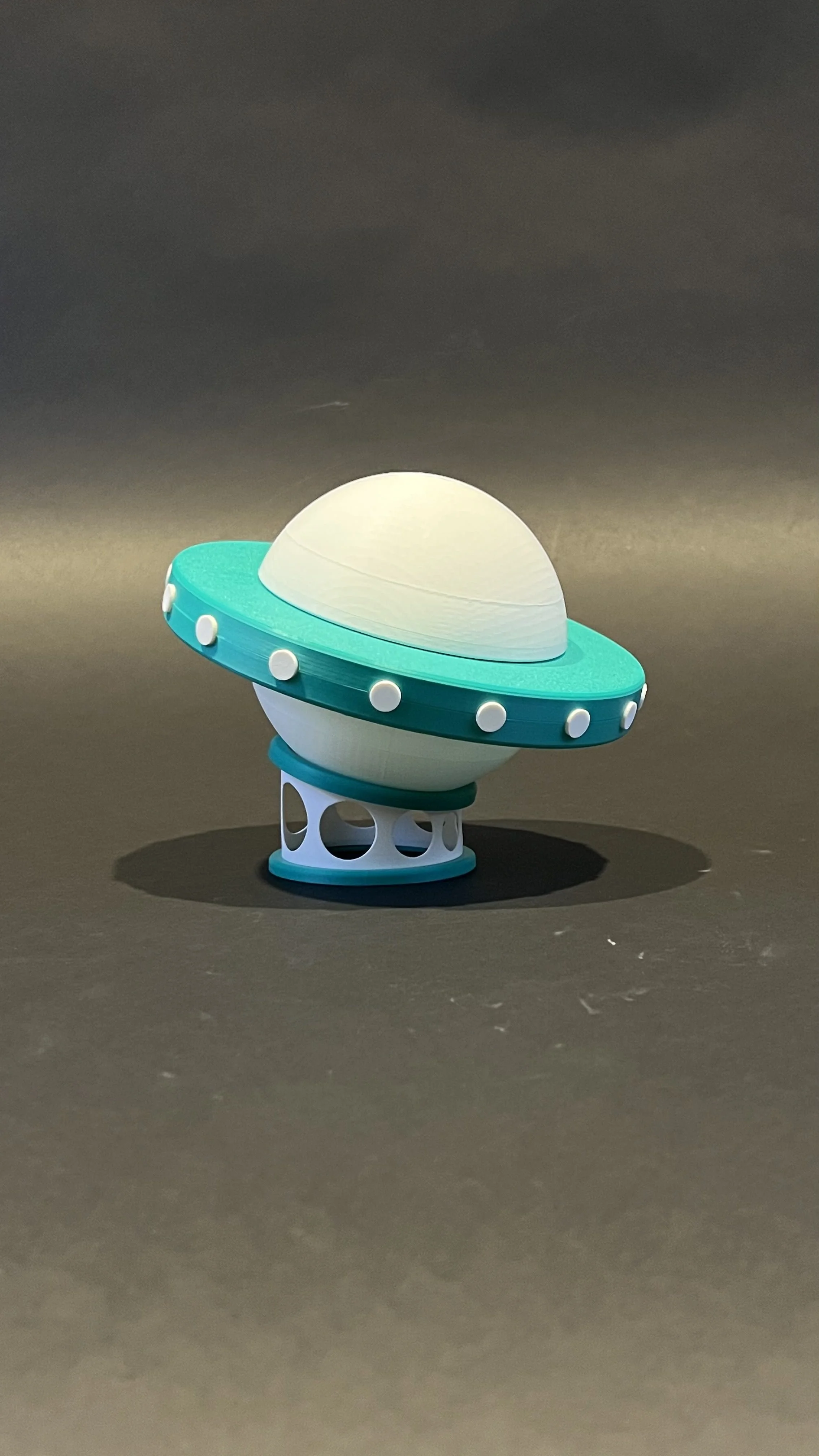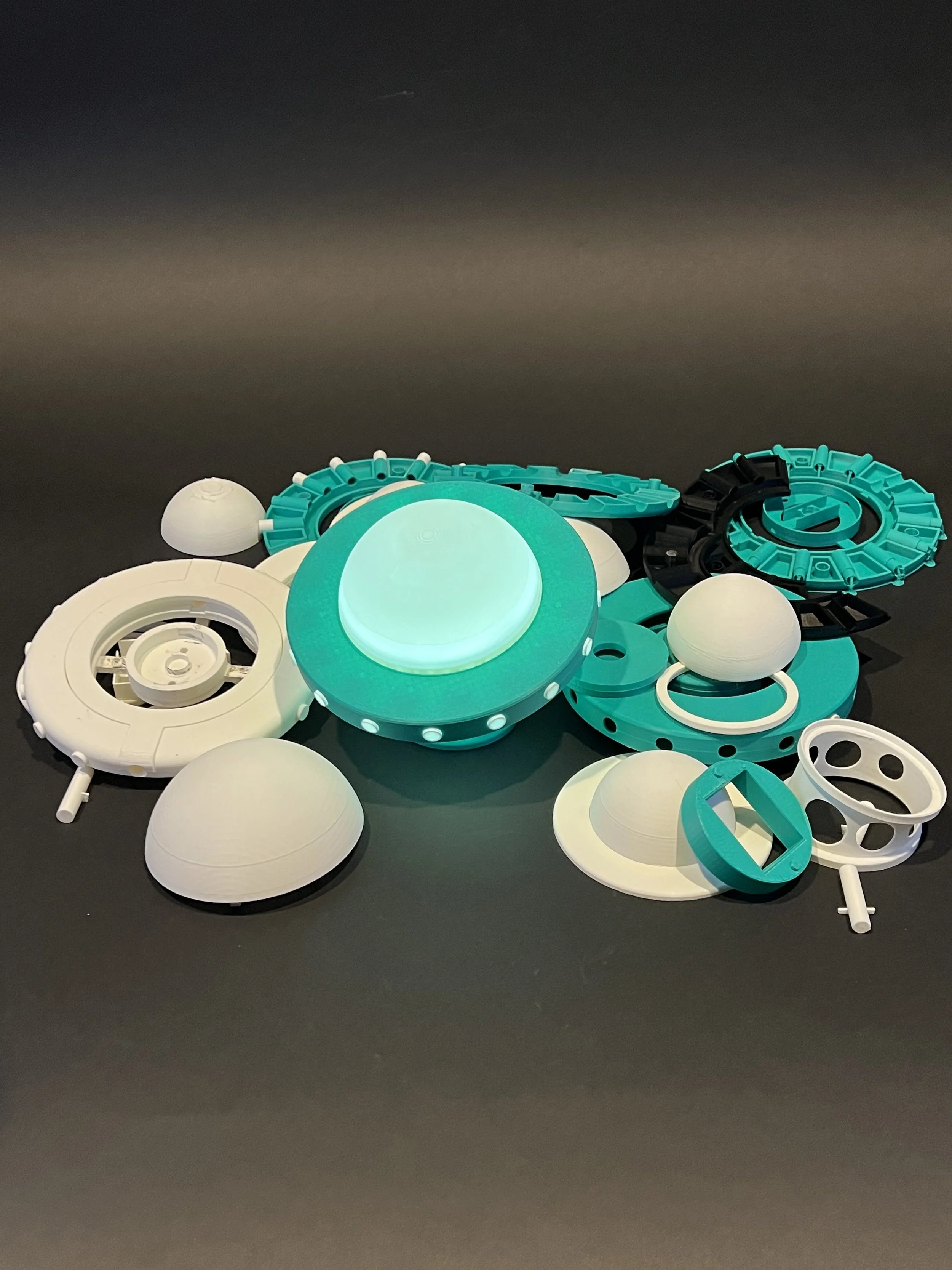 Based on my sketches, I made a rough CAD model in Fusion 360. The final model would embrace the space and planetary aesthetic. Leaning into that aesthetic, I felt it would be more suitable for a younger audience, so I pivoted the design into a nightlight for younger kids, ages 4-5.