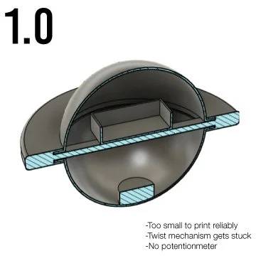 To fit the whimsy and accessibility of a kids’ nightlight, I decided in lieu of a traditional button, I would make the whole nightlight twist to adjust the light levels. I researched potentiometers and sautered with an LED strip to create the circuit for the prototype.