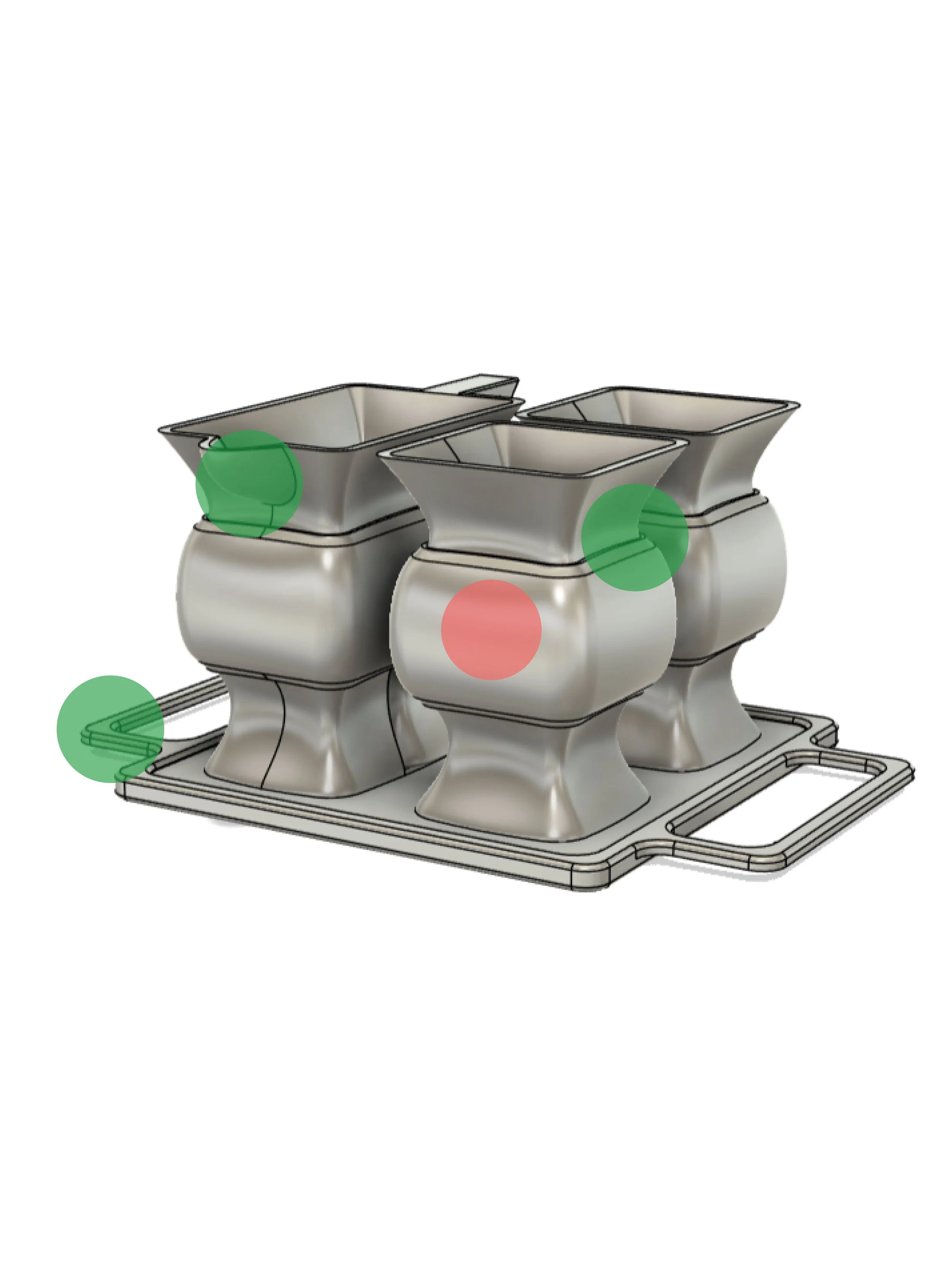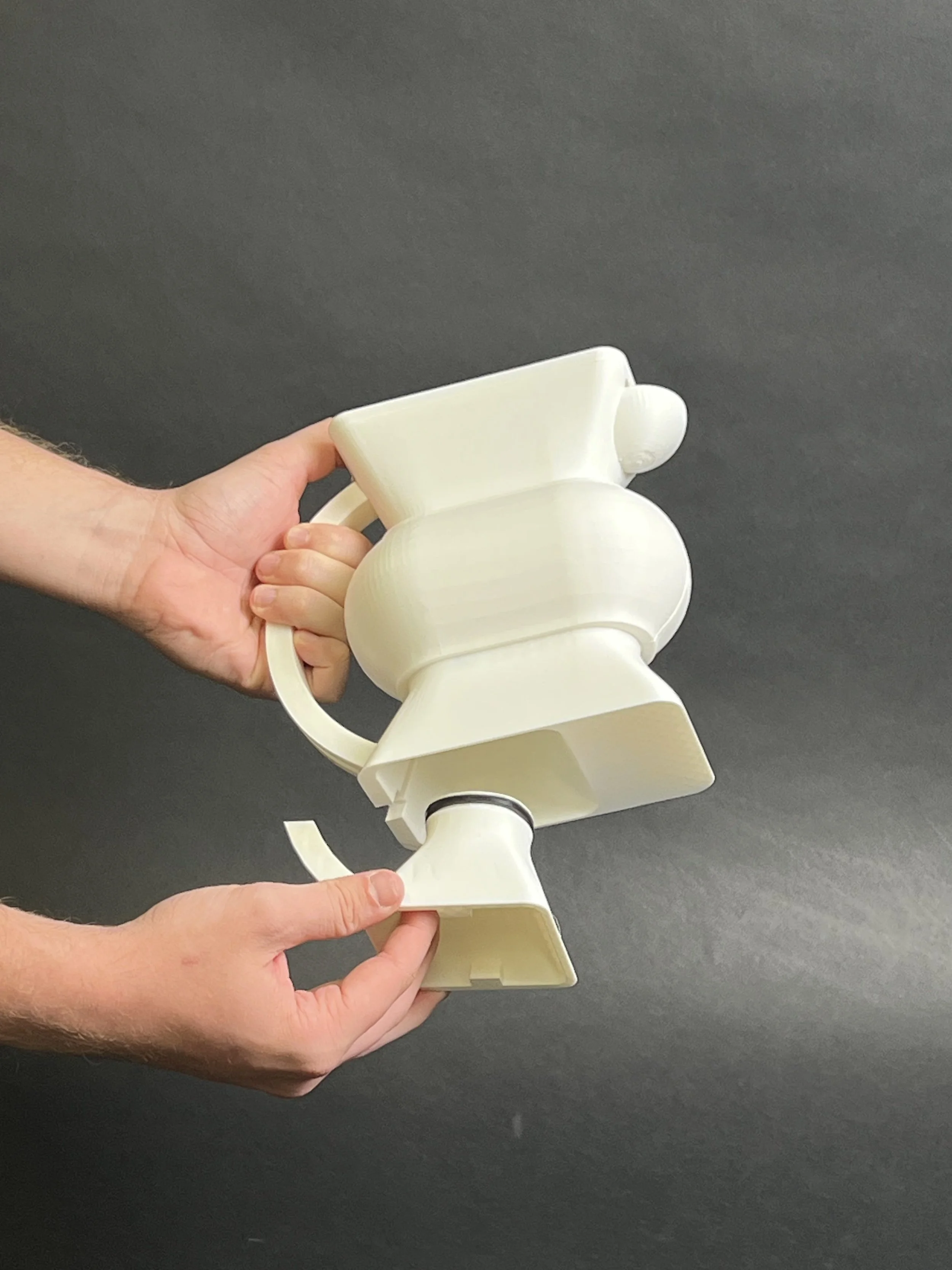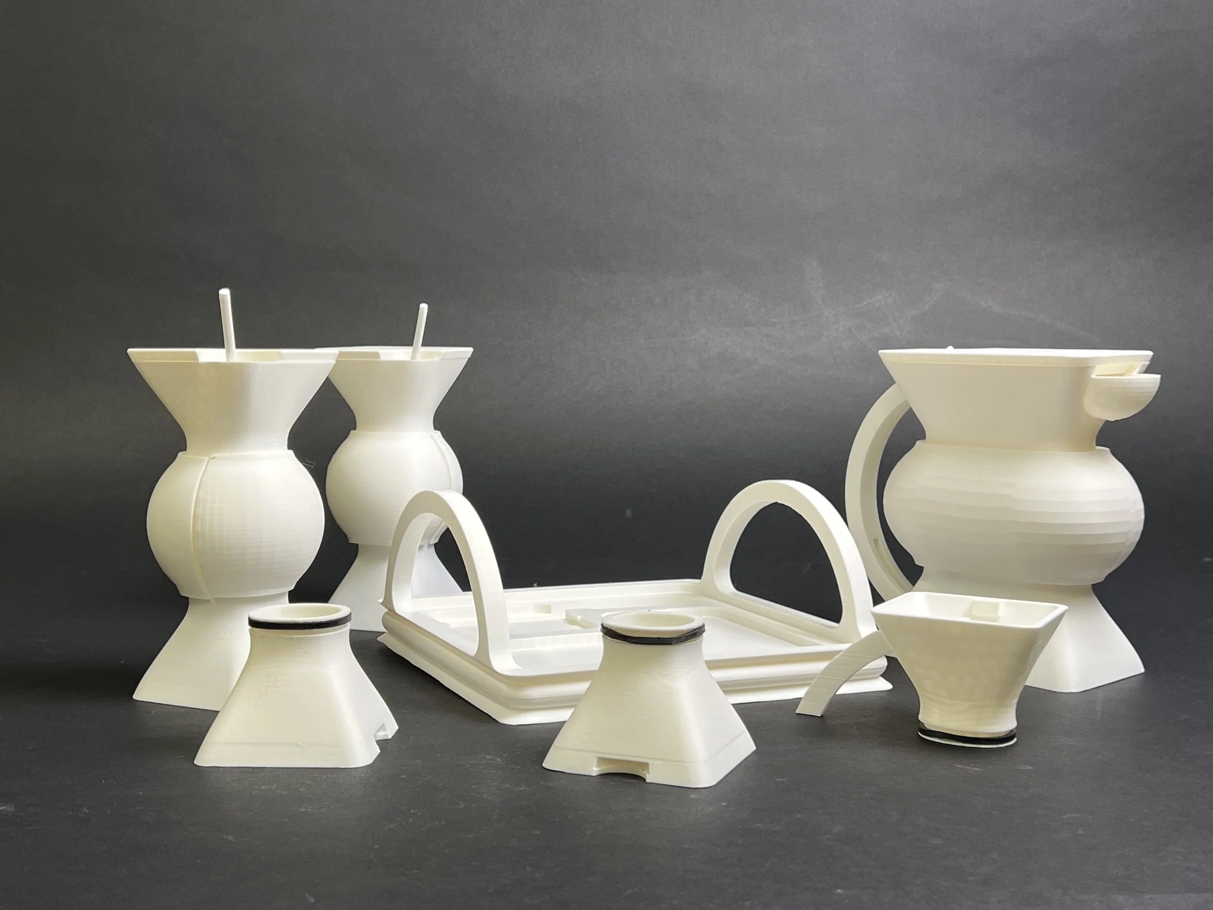 I was inspired by the delicate curves of the tradtional Rudeshiemer cup. The boxy nature and the way parts fit into one another stood out to me about the airline pieces.