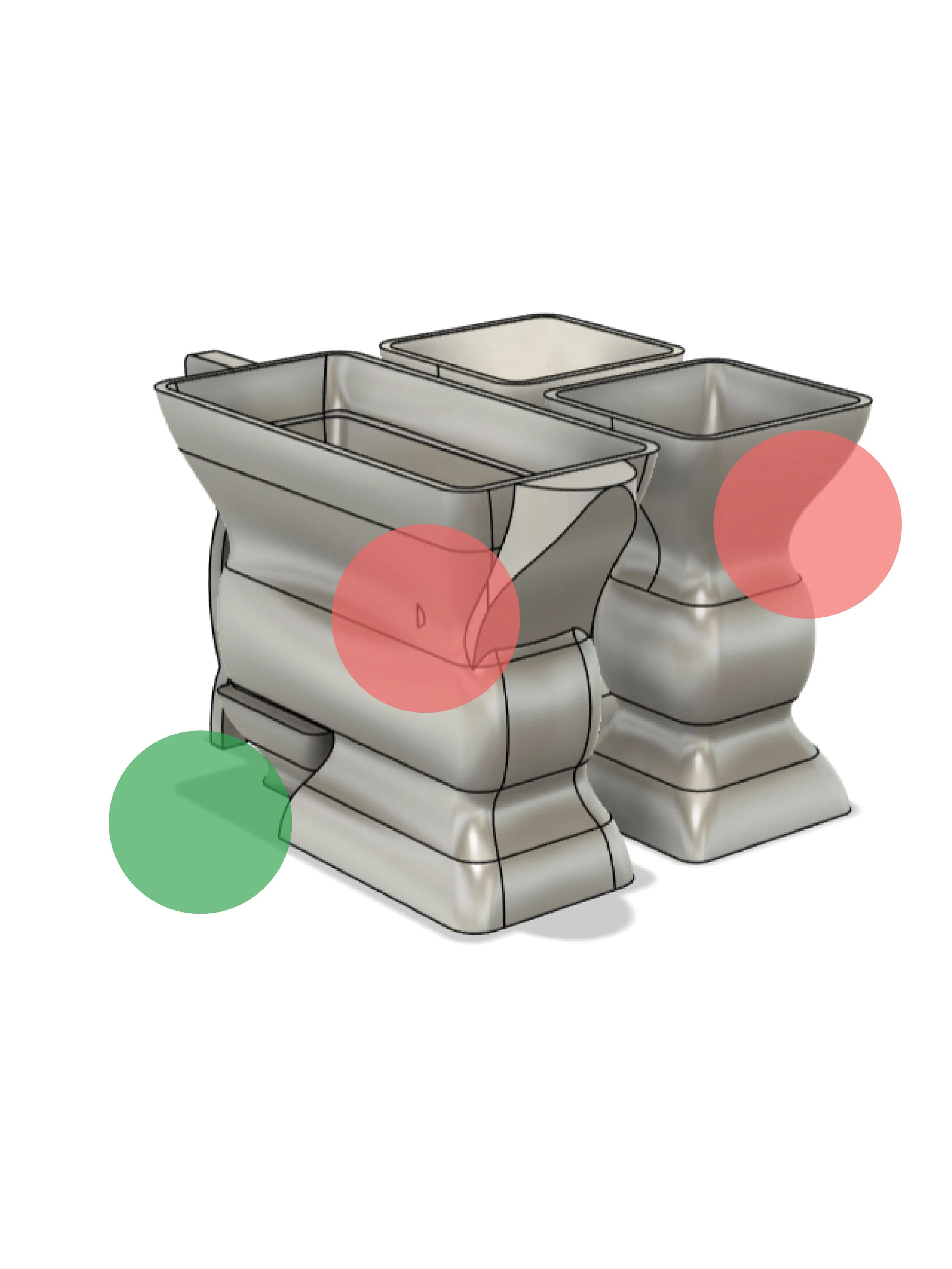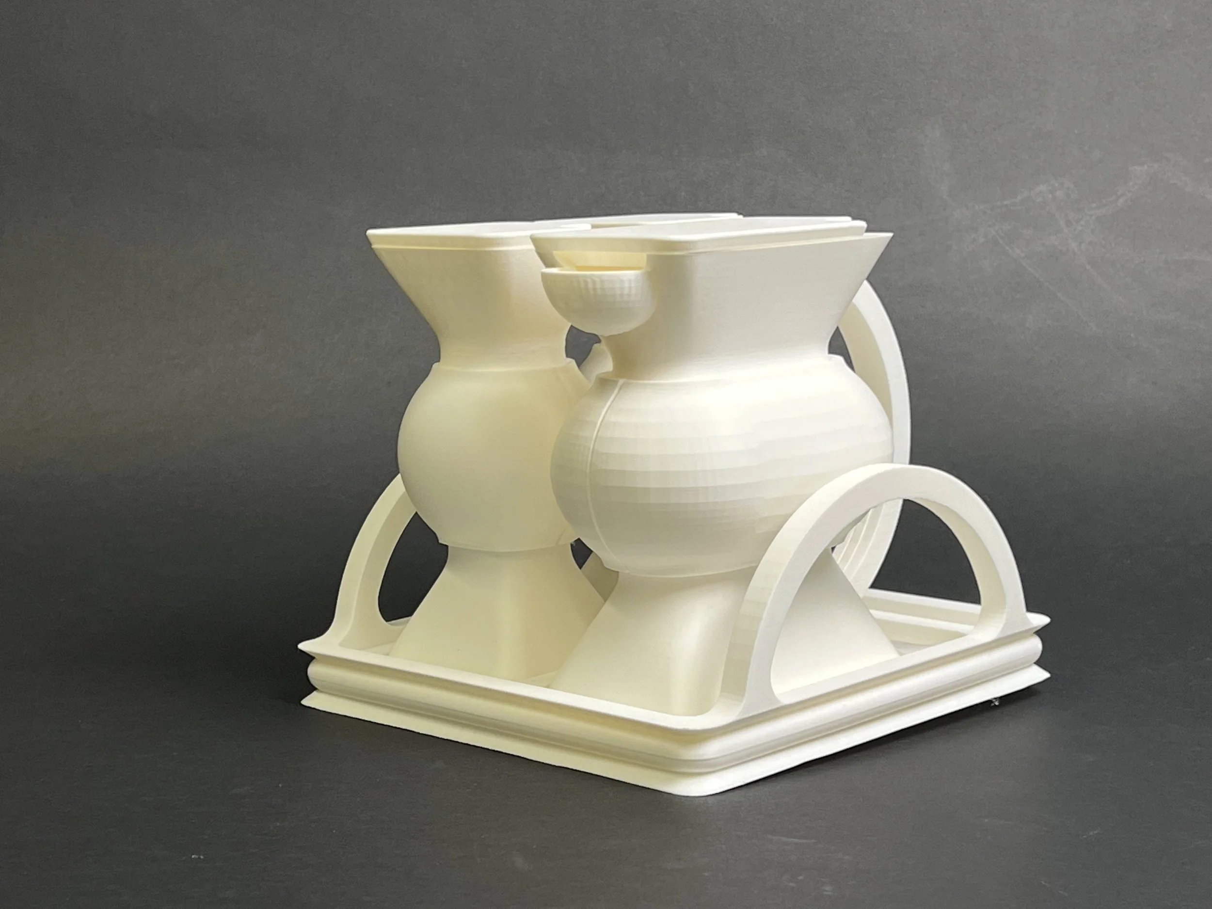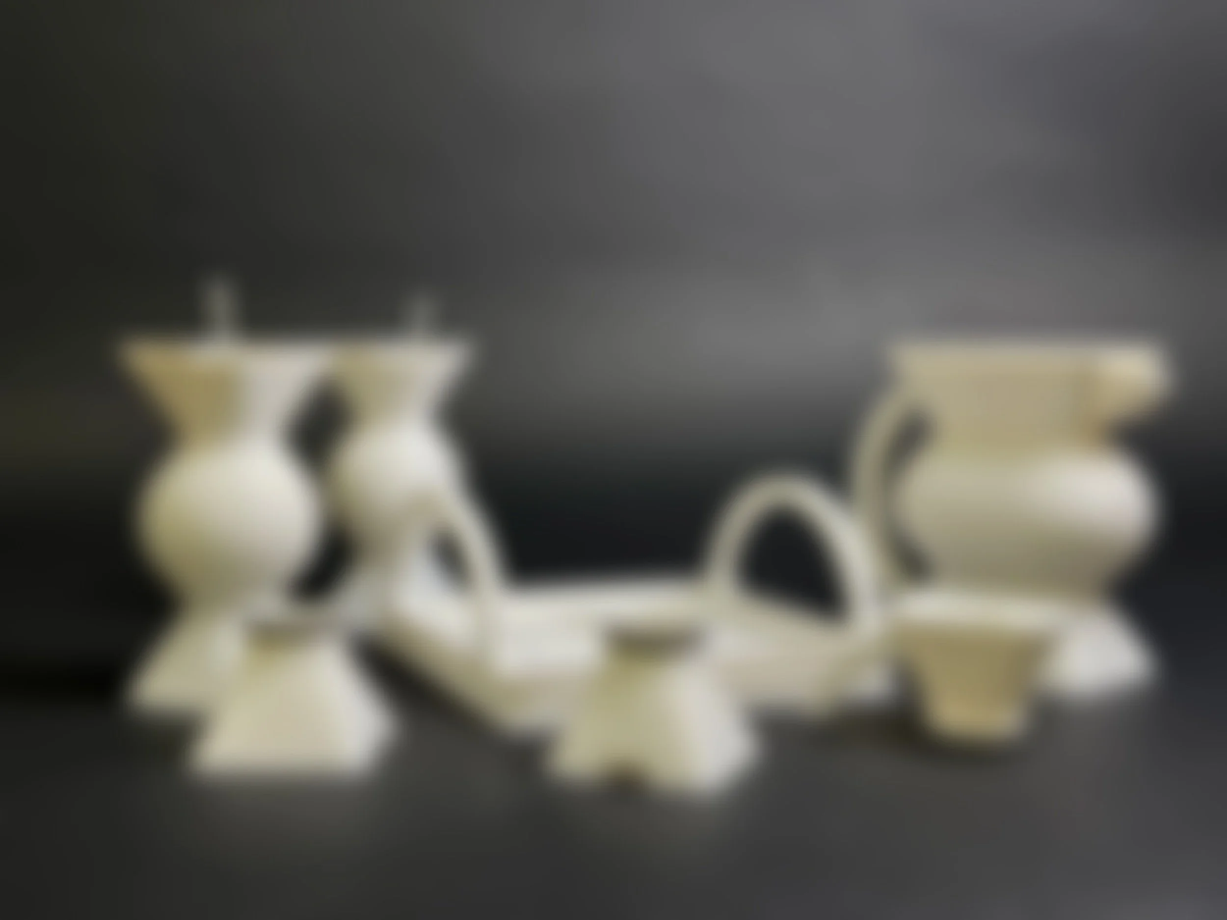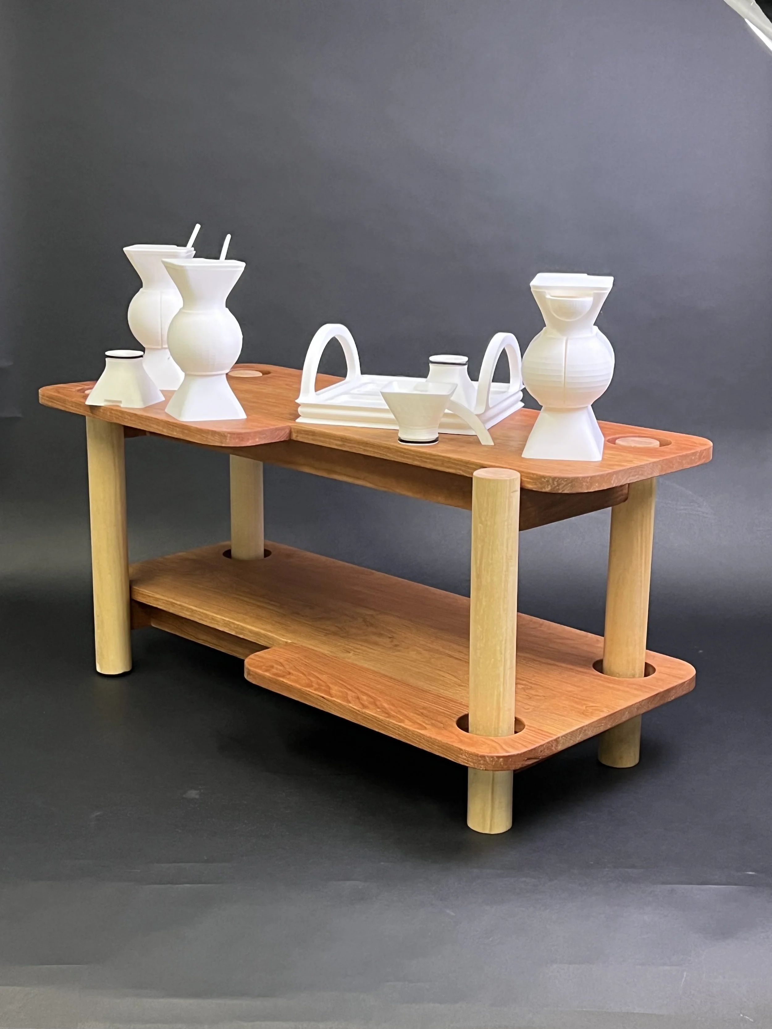 I was inspired by the delicate curves of the tradtional Rudeshiemer cup. The boxy nature and the way parts fit into one another stood out to me about the airline pieces.