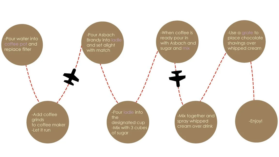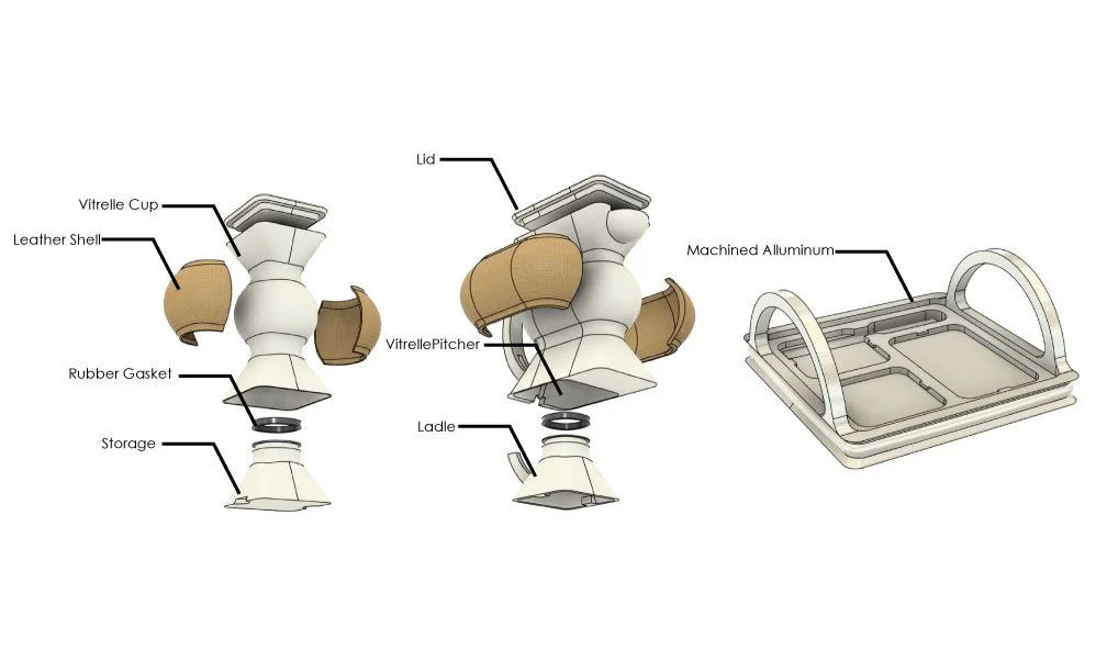 My initial research for the project led me to Rudeshiem, Germany. I researched a traditional beverage known as Rudeshiemer Coffee. It was made from black coffee, Alspach brandy, and some sugar. The drink is traditionally served in its own unique cup. I decided to put the beverage up in the sky on a private airline flight. Combining the two would involve capturing the unique form of the Rüdesheimer cup and the utilitarian nature of airline dishware.